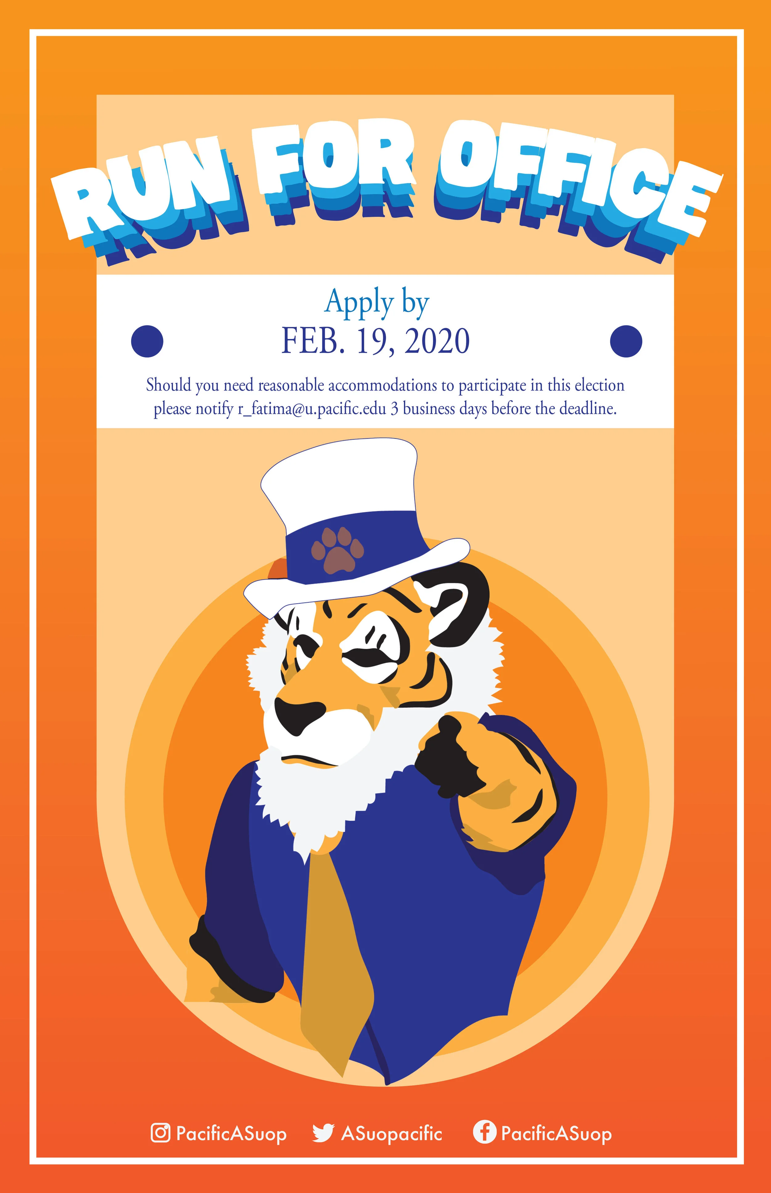 Run for Office 2020Check out the content created for the University of the Pacific’s 2020 Election! 11 x 17 Poster Make It Instagram Post Make It Facebook Post Make It